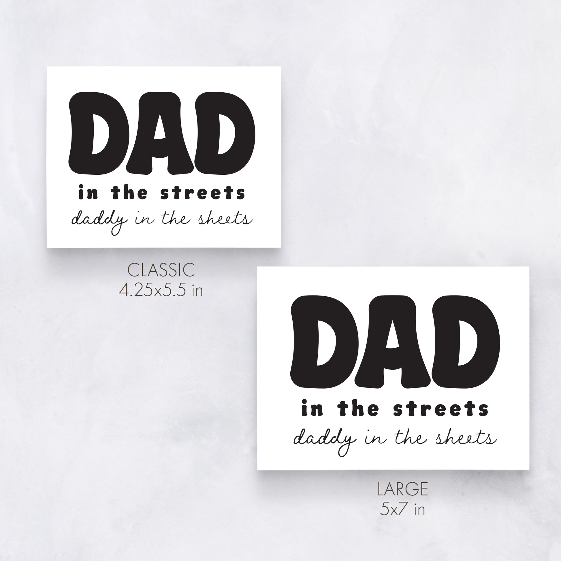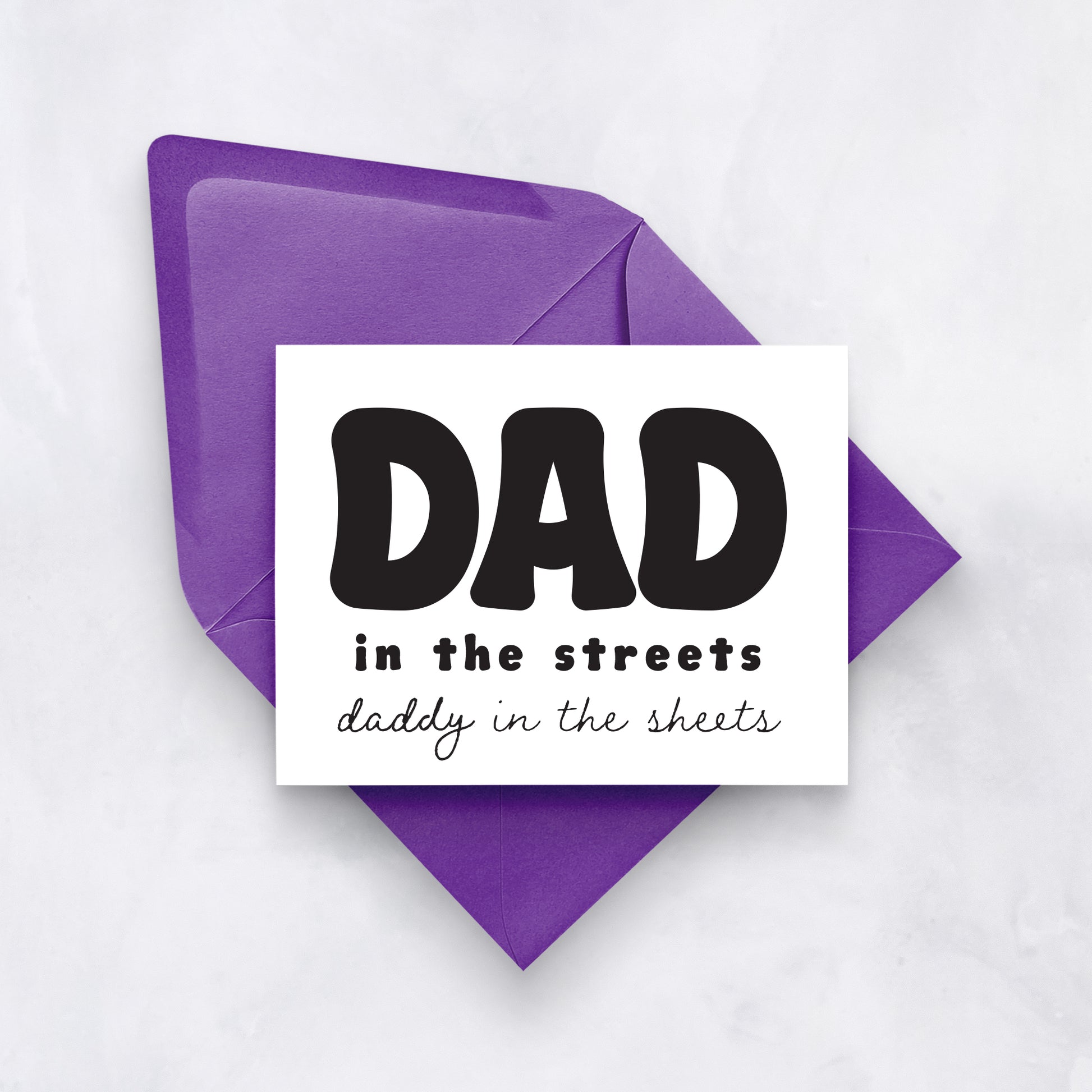 Spice up Father’s Day with this cheeky card. Featuring the bold phrase “Dad in the streets, Daddy in the sheets,” it’s a playful way for a partner or spouse to add humor (and heat) to their celebration.