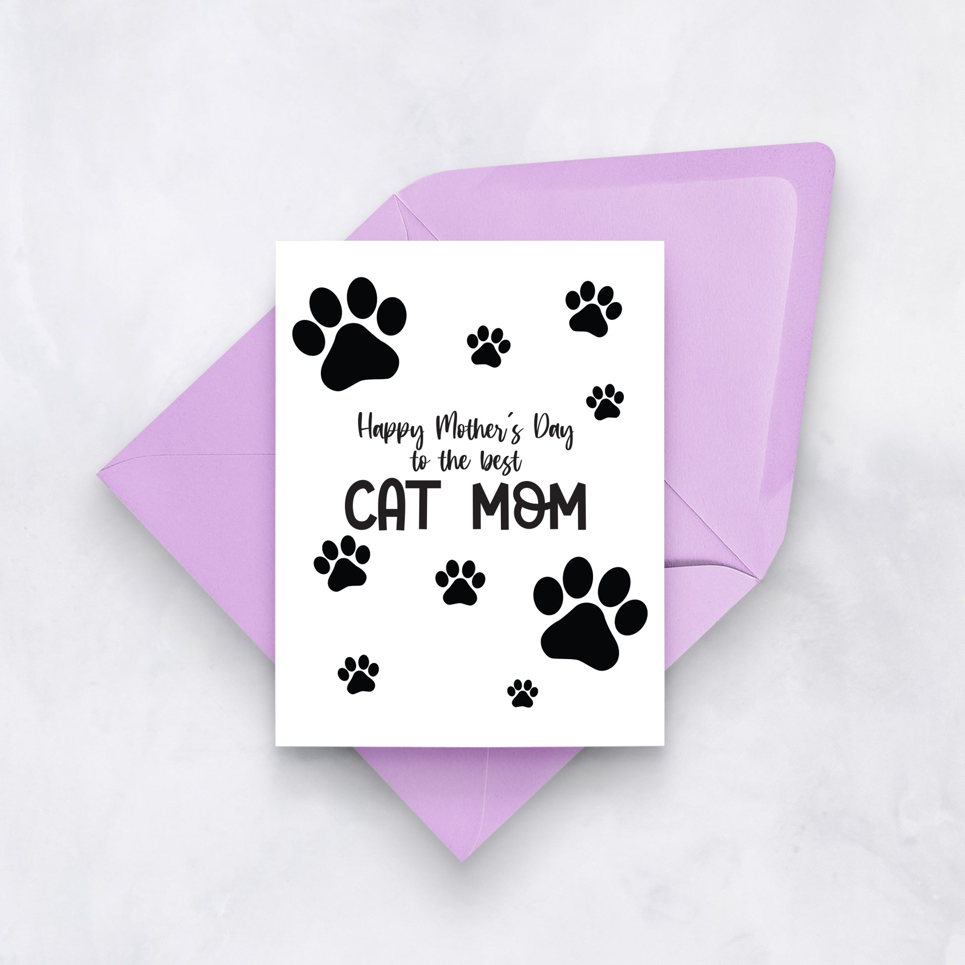 A fun and heartwarming Mother’s Day card for cat moms. Featuring bold paw prints and playful lettering, it’s the perfect way to celebrate a pet mom’s love and care.