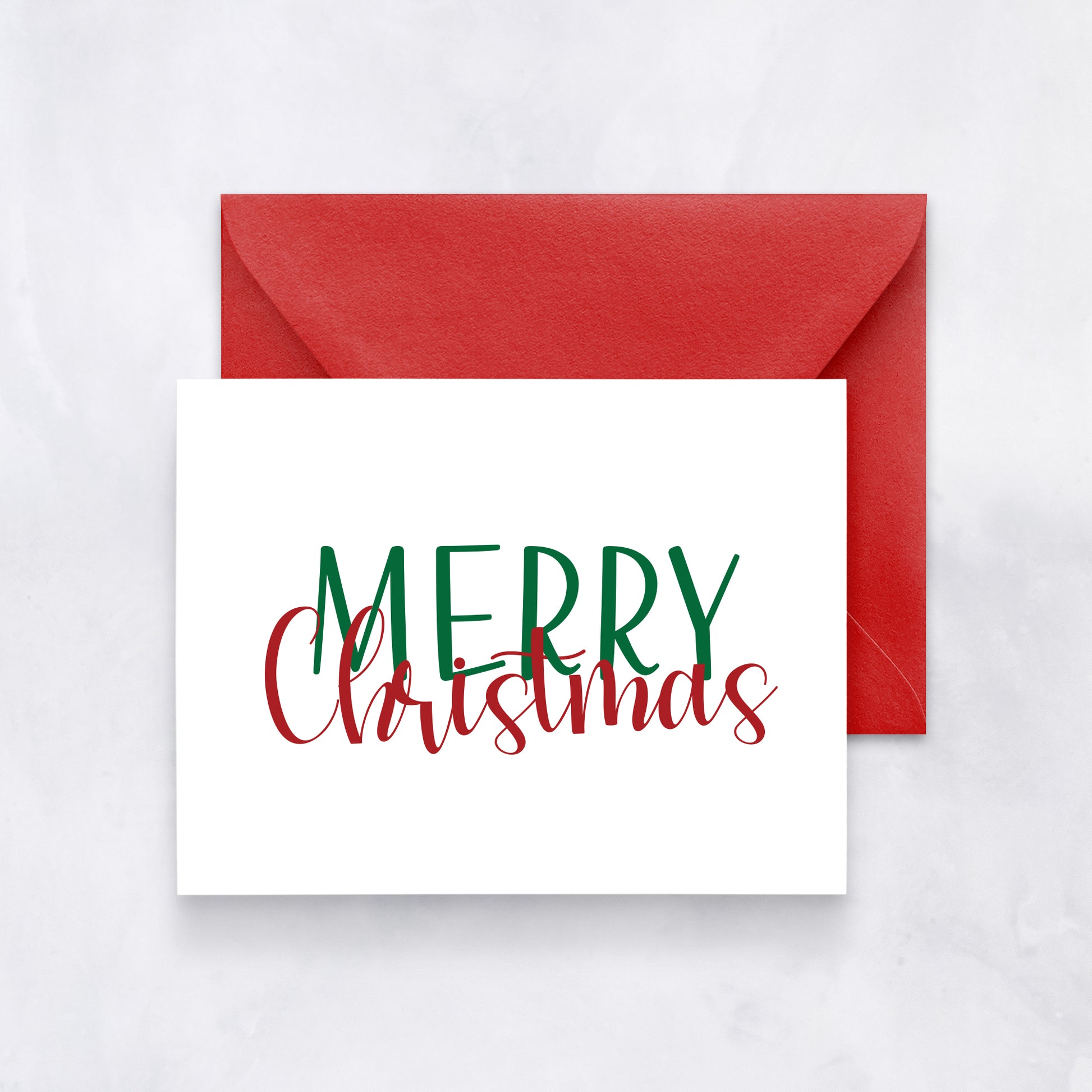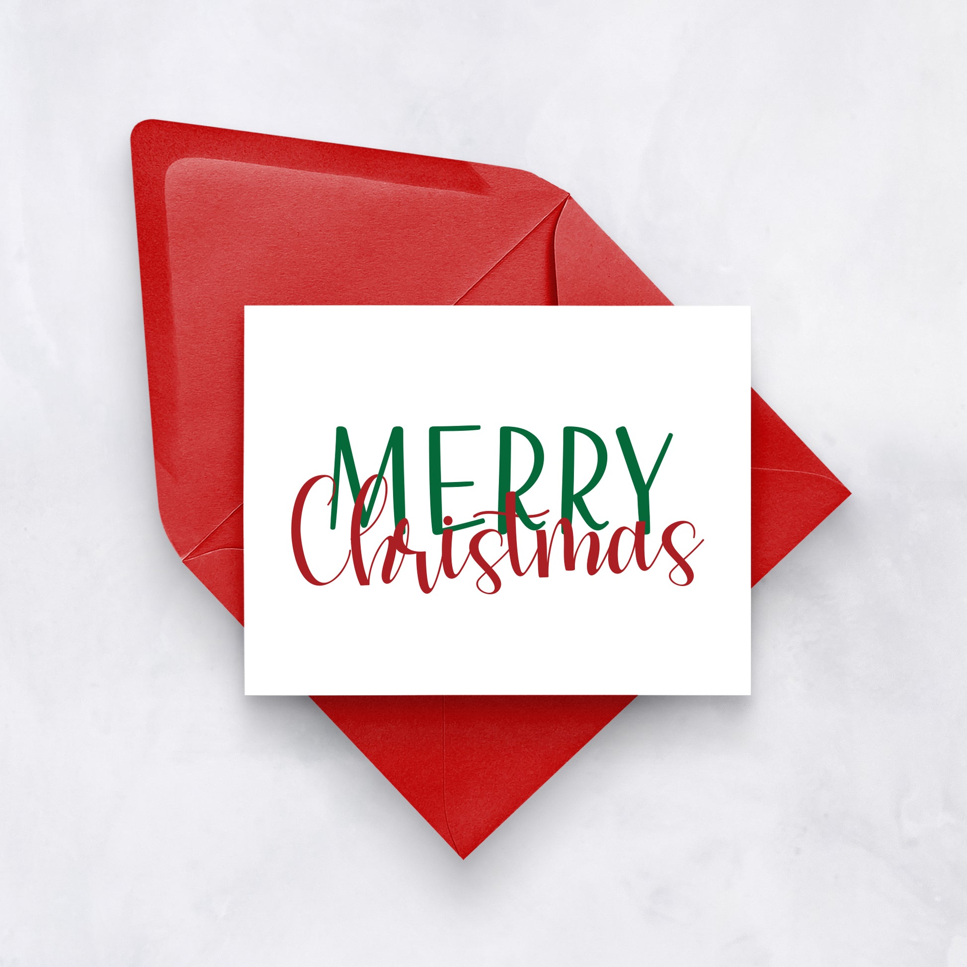 Send festive wishes with this simple and cheerful Merry Christmas card, featuring bold red and green text in a playful font. Perfect for spreading holiday joy to friends, family, or coworkers.