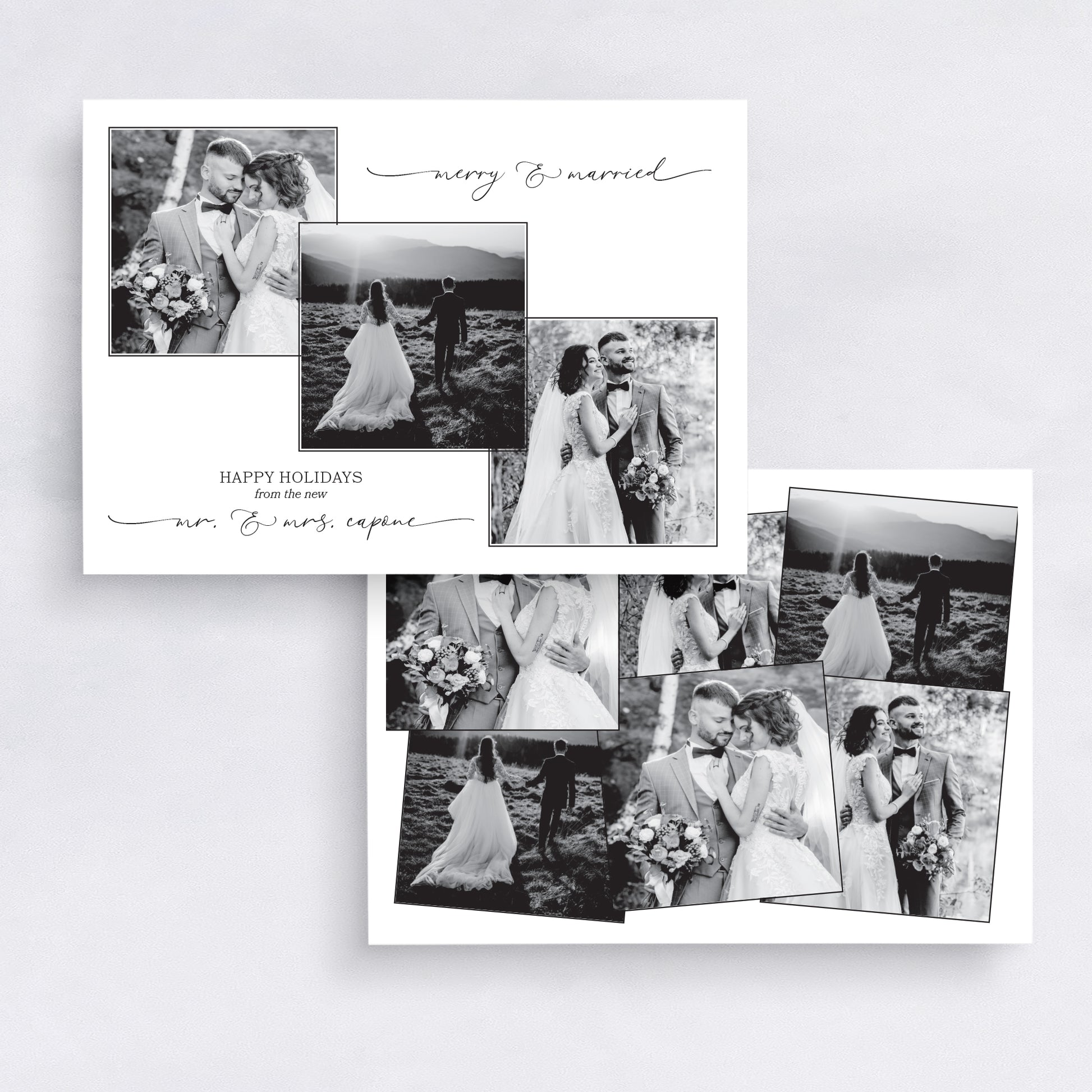 Black & White Merry & Married Photo Card | Newlywed Holiday Collage Christmas Card