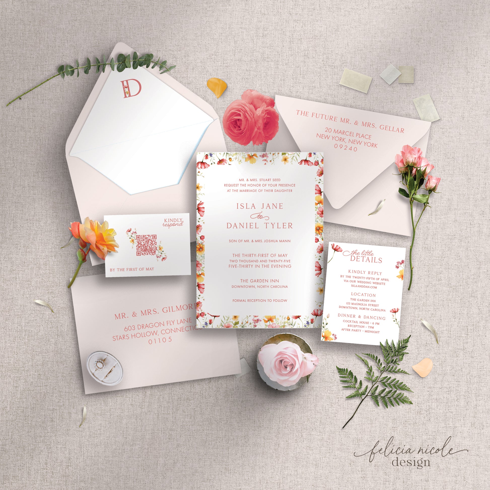 This blush and peach floral wedding invitation suite features a romantic garden design with soft watercolor florals and warm pastel tones. Designed for spring and summer weddings, this suite blends classic elegance with a fresh, modern aesthetic. Perfect for garden weddings, outdoor venues, and couples looking for romantic floral wedding invitations with a soft, timeless feel.