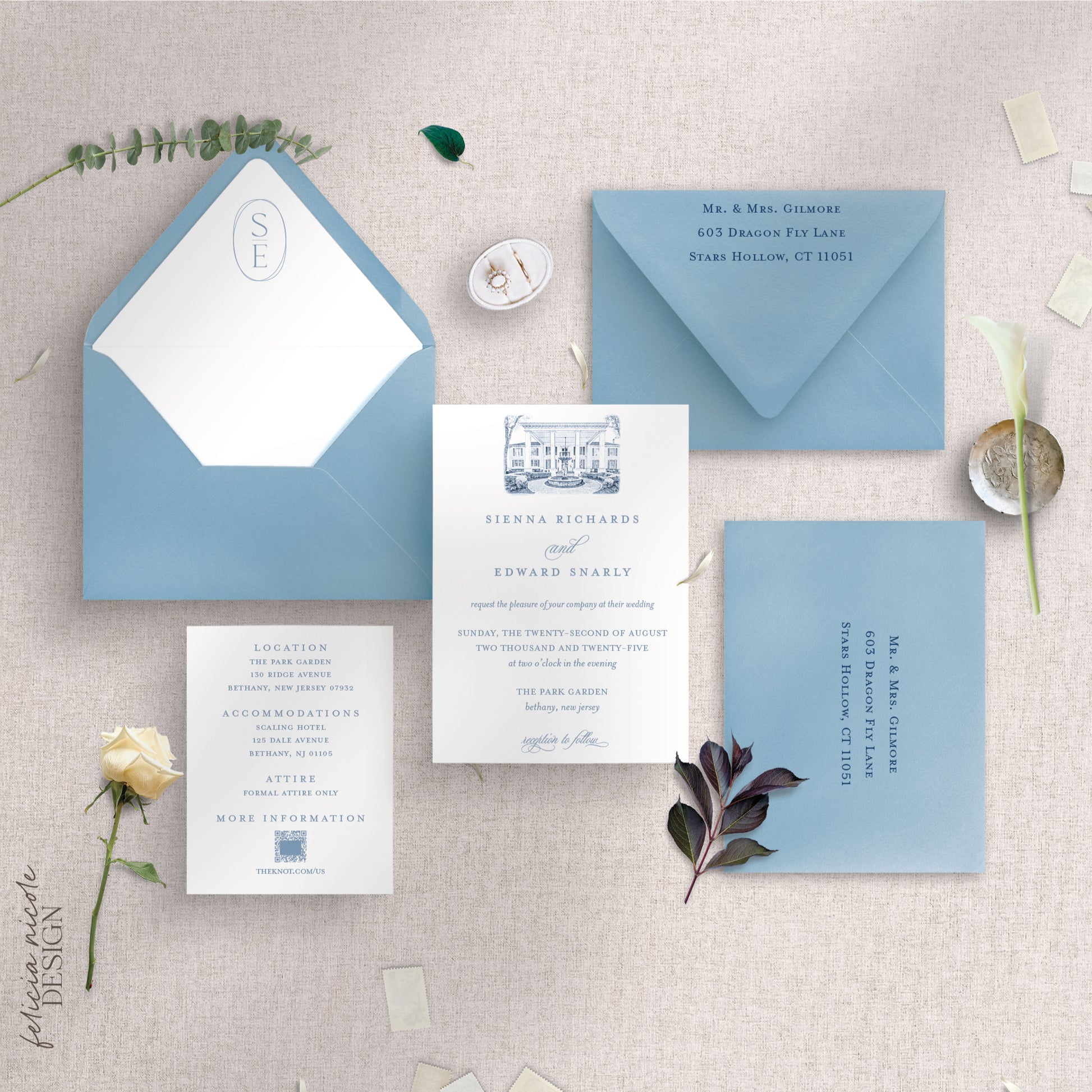Elegant and sophisticated, this muted dusty blue wedding invitation suite blends modern design with timeless charm. Featuring refined typography and subtle hues, it’s perfect for a chic and stylish celebration in any season.