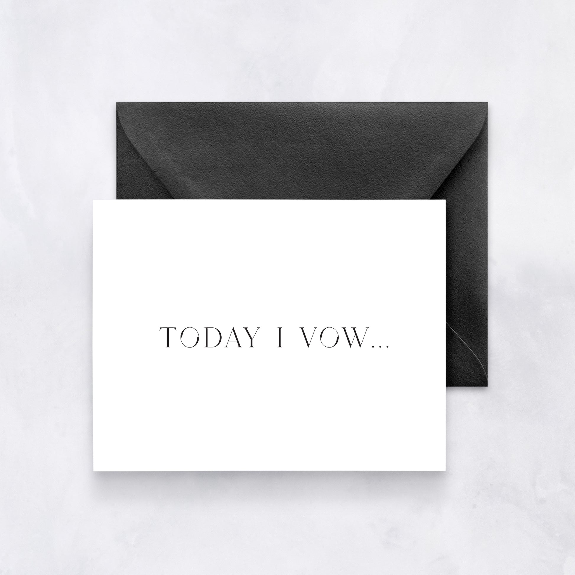 Simple, heartfelt, and timeless—this pair of Today I Vow… cards makes it easy to write personalized vows or notes to your partner before the ceremony. Ideal for weddings, elopements, or anniversaries, with matching black and white envelopes included.